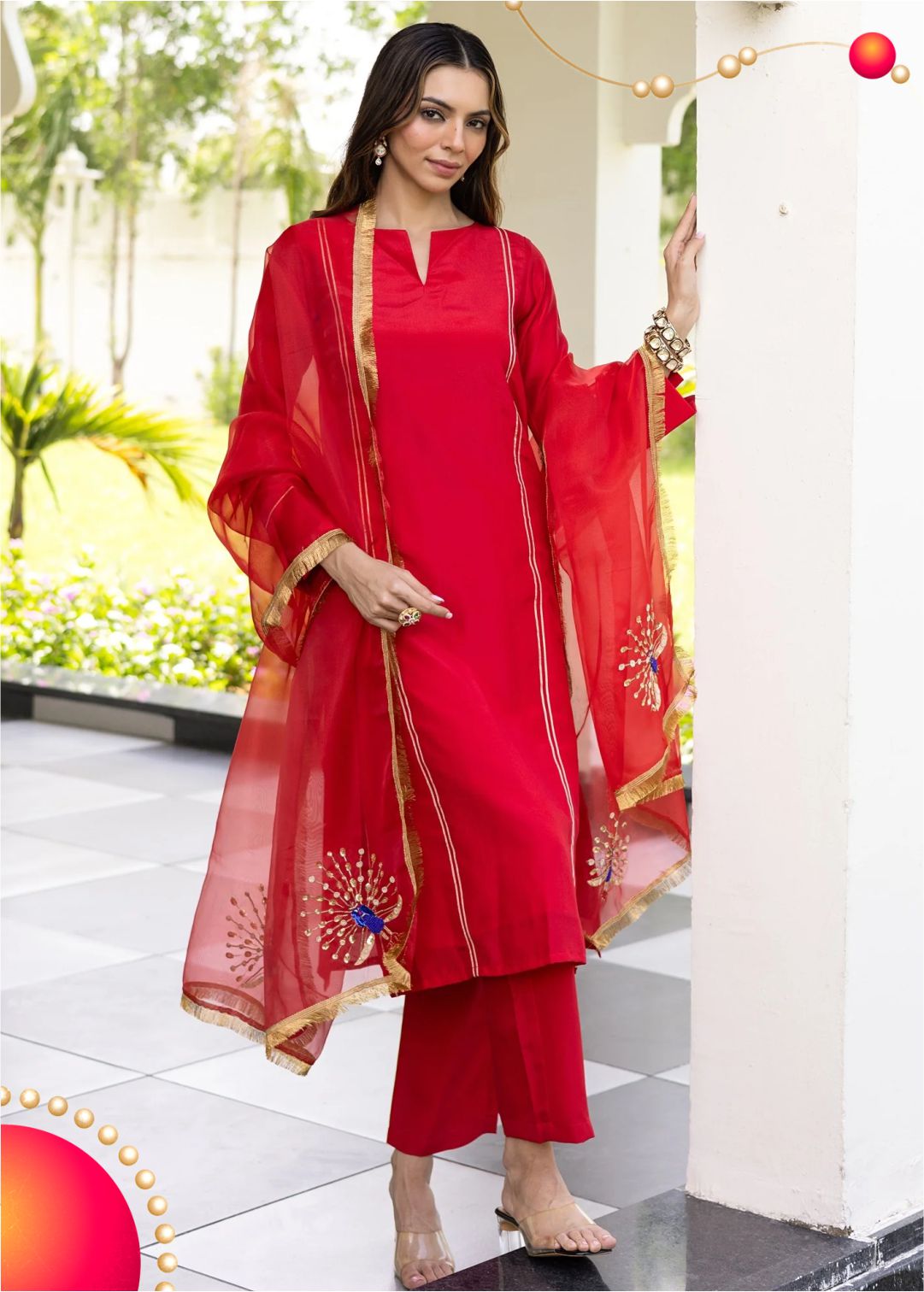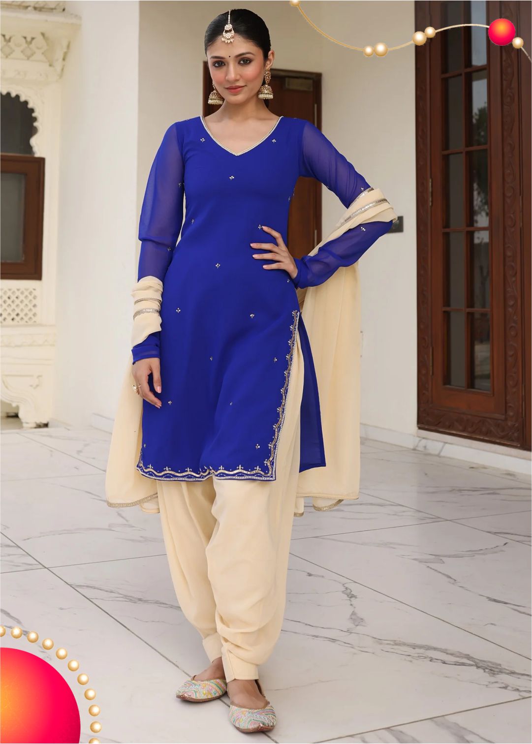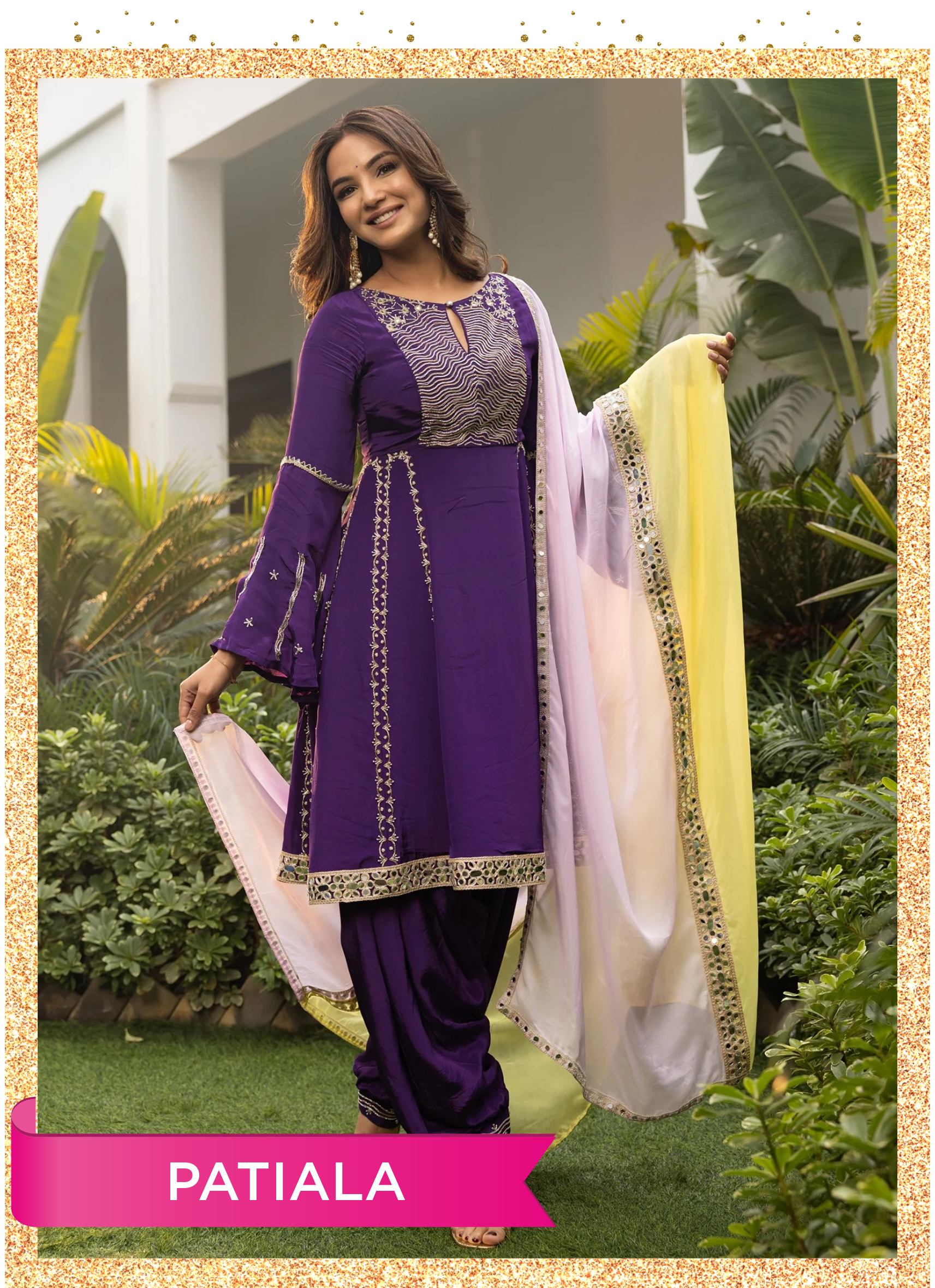 At Lavanya The Label, have a great time exploring our mesmerizing collection of Patiala suits which blend classic beauty with fresh fashion trends. Shop for your favorite sets and give a stylish update to your ethnic wear collection. Our Patiala sets are crafted using comfortable fabrics and feature innovative designs, vivid hues, impeccable stitching details, and patterns. Attend casual outings, traditional occasions or events, or a festive party dressed in our beautiful Patiala sets and let your style speak volumes about your fashion.