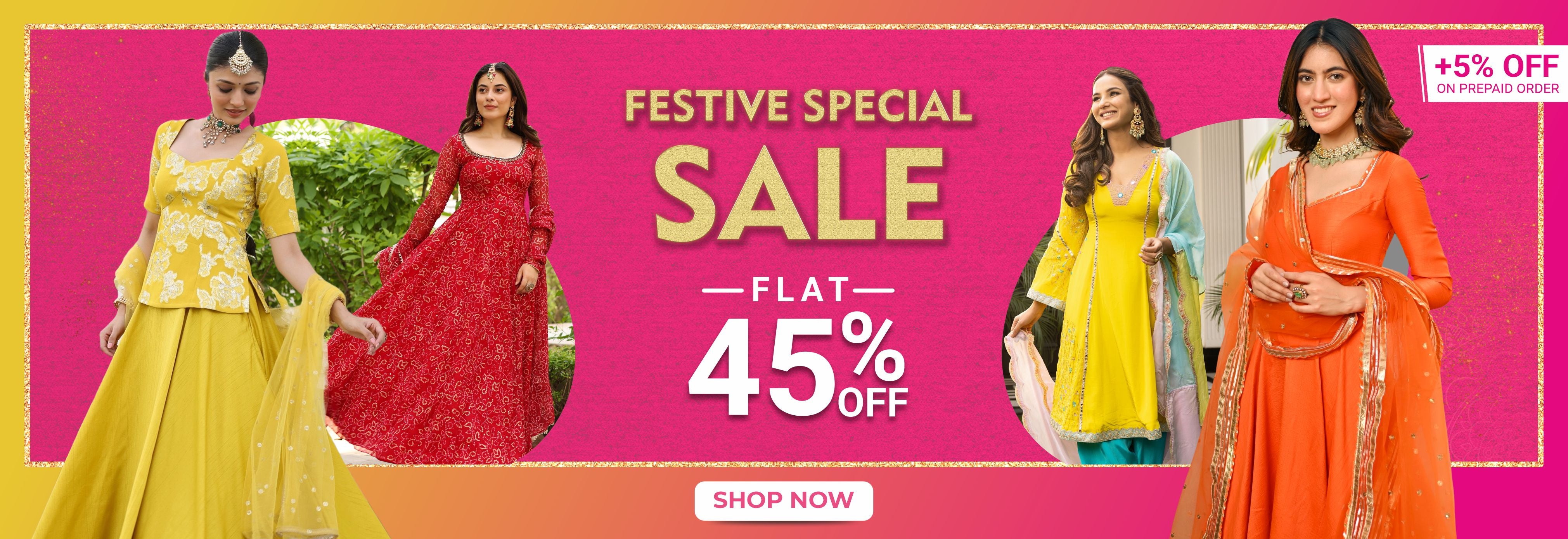 Embrace the rich cultural heritage and celebrate femininity with our stunning collection of ethnic wear for women. Our collection reflects the diversity and beauty of Indian ethnic wear for women. Our traditional outfits are crafted with precision by paying attention to detailing, and are adorned with intricate embellishments. Whether it is a social function, wedding event, festival party, or house warming ceremony, our exquisite traditional wear will make you stand out with grace and poise.