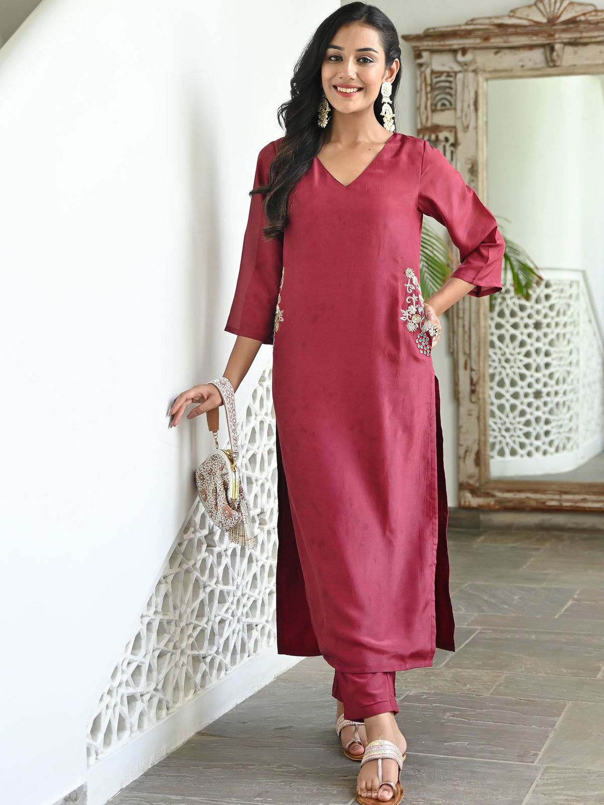 You can wear a kurta set for different occasions like festive parties, evening events, social gatherings, wedding events, or traditional celebrations.