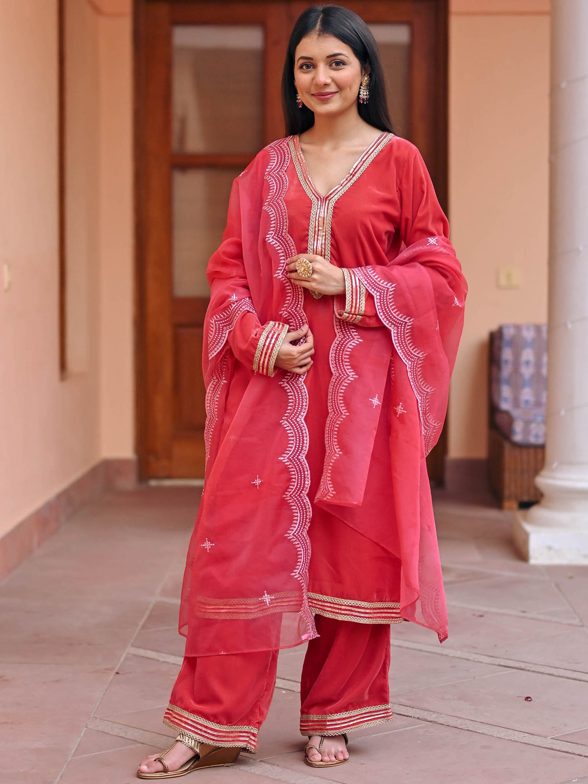 Kurta Pant Sets with Dupatta: Shop for the best of ethnic fashion by opting for kurta pant sets with dupatta. Its grace and elegance make it a perfect go-to option for any traditional function or event.