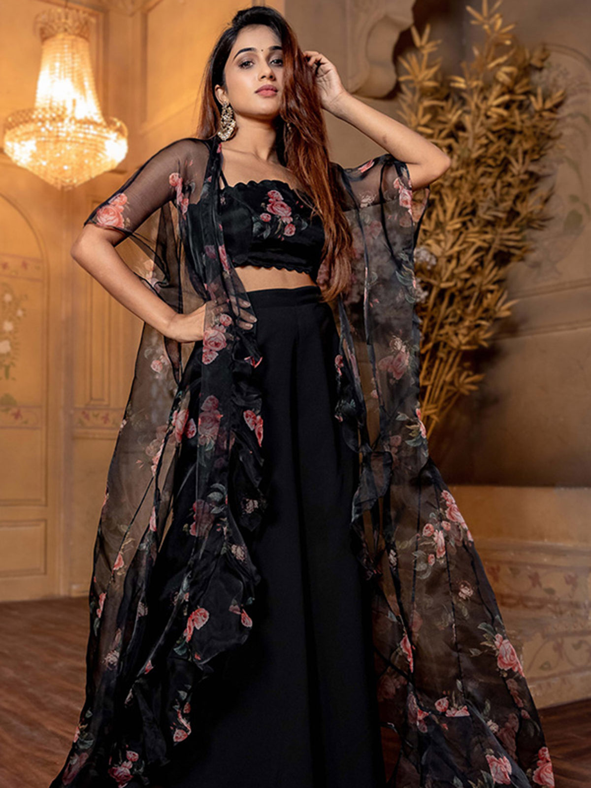 Blue Crop Top Palazzo Set Without  ShrugBlue Crop Top Palazzo Set Without  Shrug