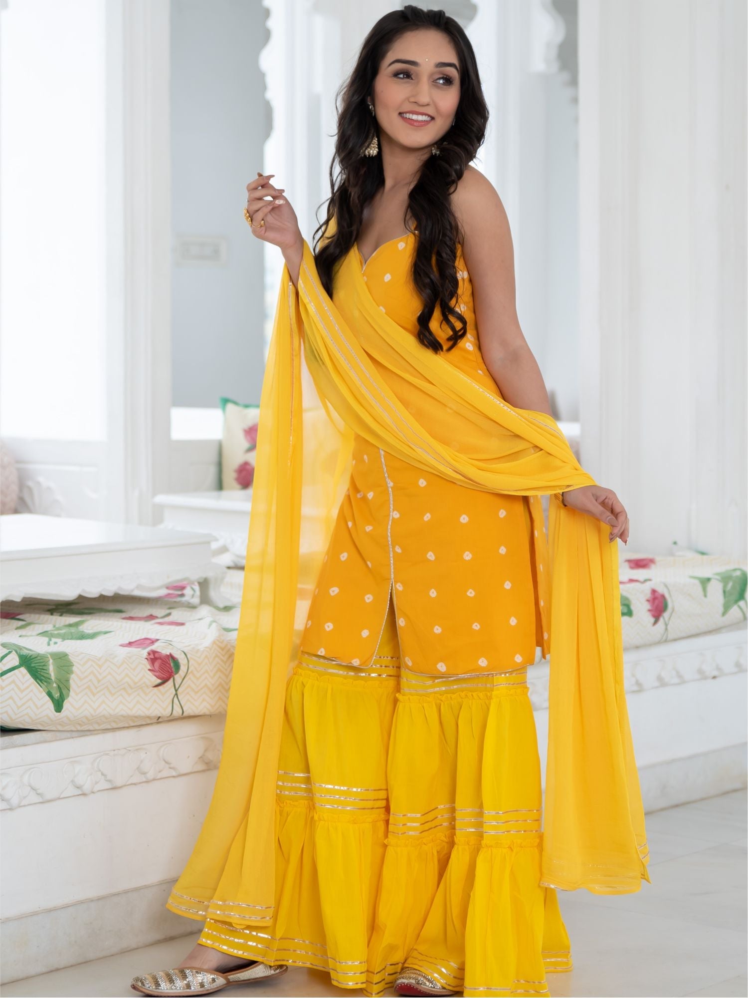 Bandhani Tie-Dye Short Kurta and Sharara Set