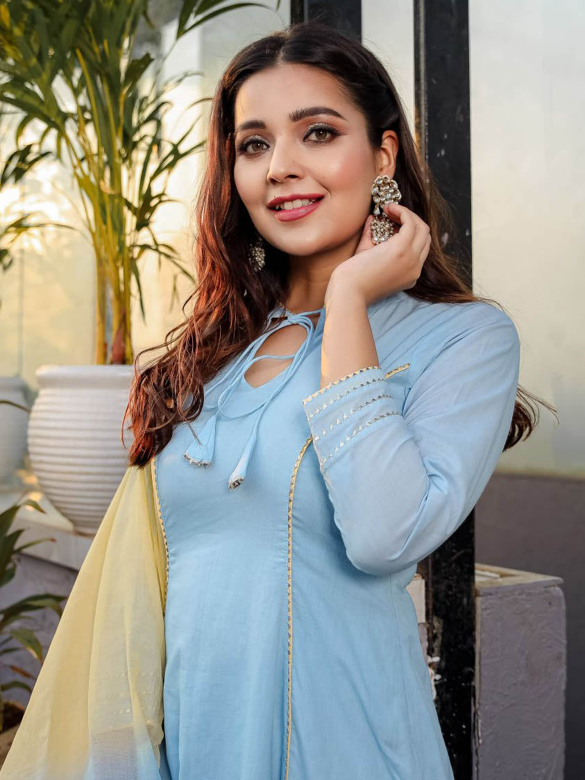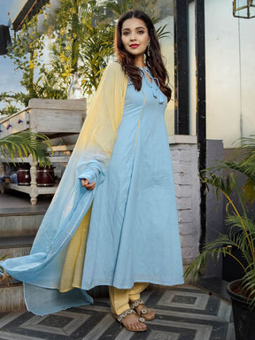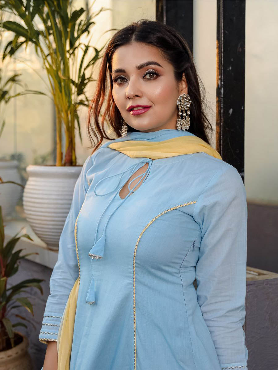 - Featuring Blue Yellow Anarkali Without Dupatta