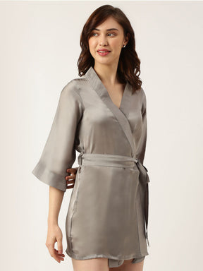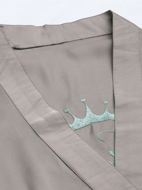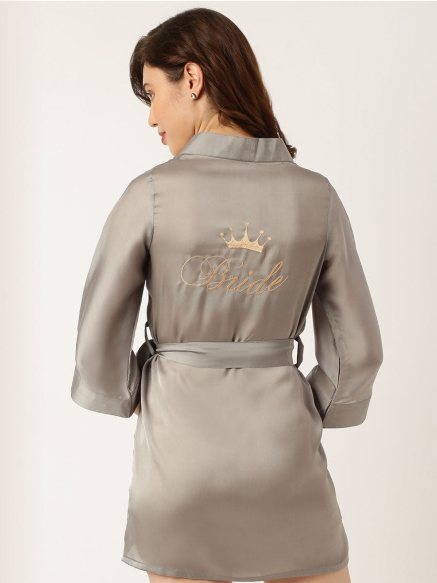 Elevate your elegance with our Bride Embroidered Grey Silk Robe – a sublime blend of sophistication and comfort. Crafted from luxurious silk, adorned with delicate embroidery, this robe is a timeless masterpiece that celebrates the grace of the bride. Indulge in luxury as you prepare for your special day or relish moments of relaxation in exquisite style.