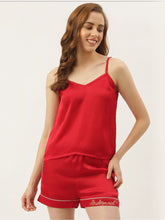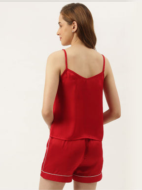 Bridesmaid Embroidered Red Silk Shorts With Camisole Set