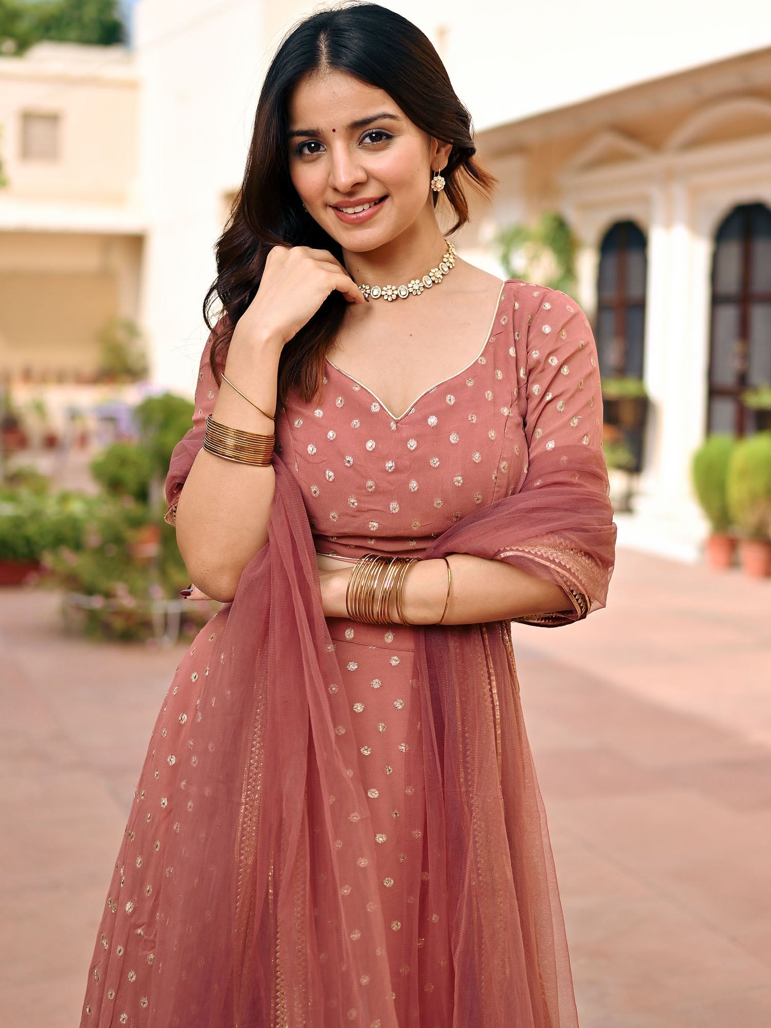 Elevate your ethnic charm with our Brown Georgette Lehenga Set. This enchanting ensemble showcases the rich allure of brown georgette adorned with intricate detailing. The flowing silhouette, coupled with subtle embellishments, exudes a perfect blend of grace and sophistication. Immerse yourself in timeless beauty, making a captivating statement at every occasion. Embrace the allure of tradition with a modern twist in this stunning Brown Georgette Lehenga Set.