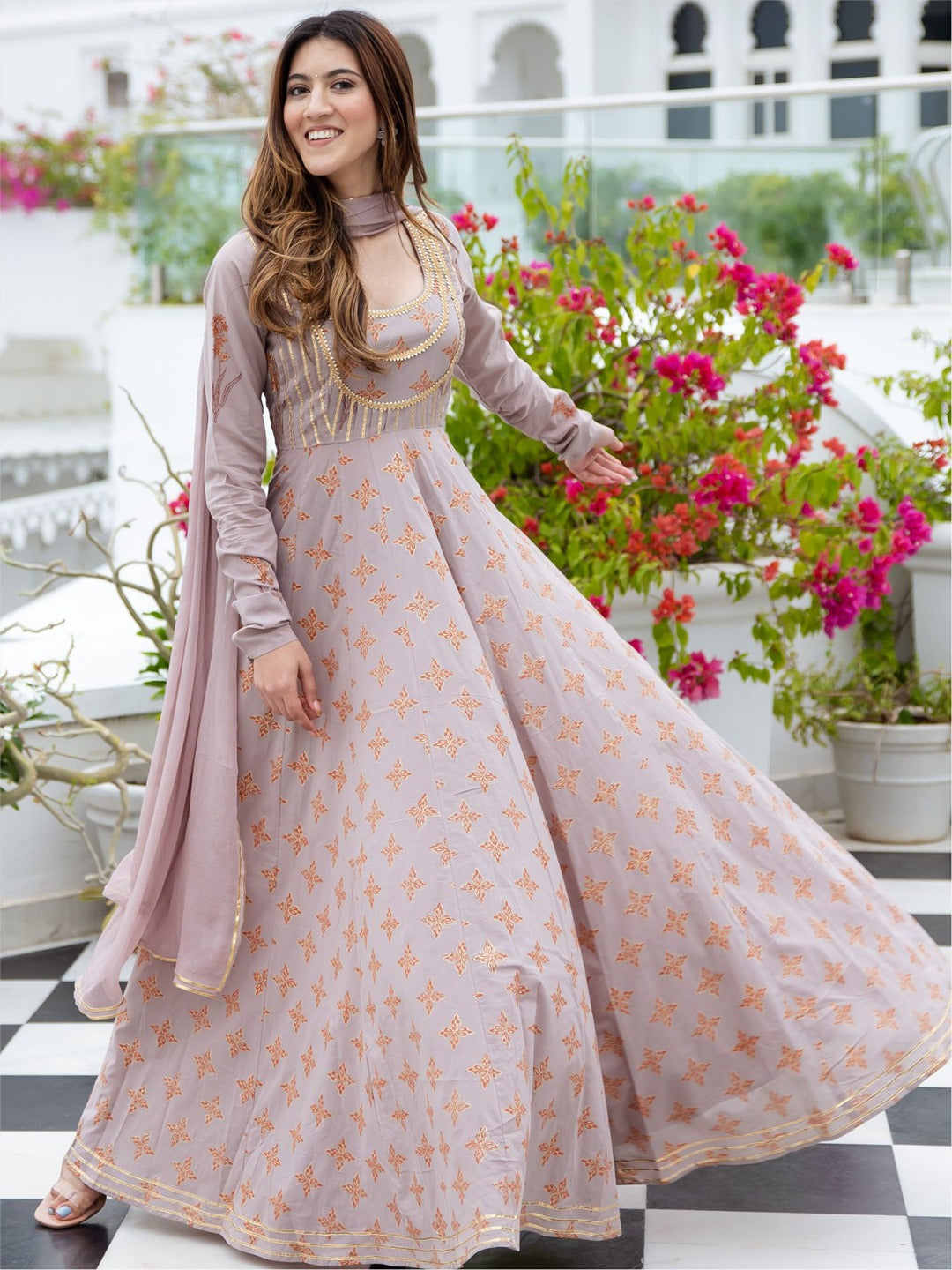 Elegant and timeless, our Cotton Printed Flared Anarkali with Dupatta is a symphony of style and comfort. The vibrant prints dance gracefully on the soft cotton fabric, creating a mesmerizing look. The flared silhouette adds a touch of drama, while the accompanying dupatta completes the ensemble with finesse. Embrace the allure of tradition with a contemporary twist in this captivating outfit.