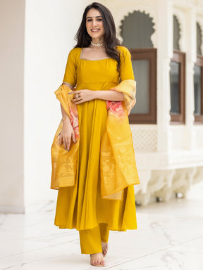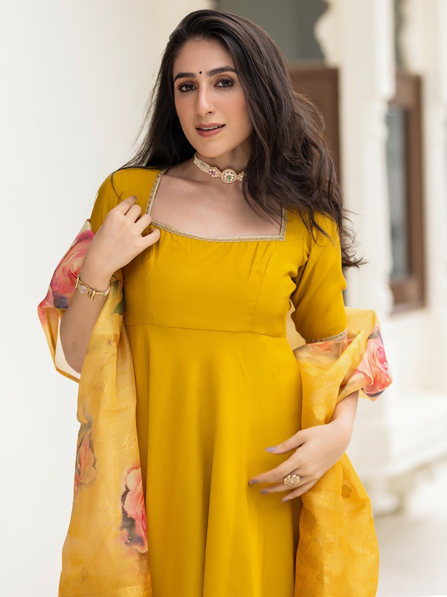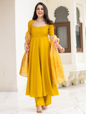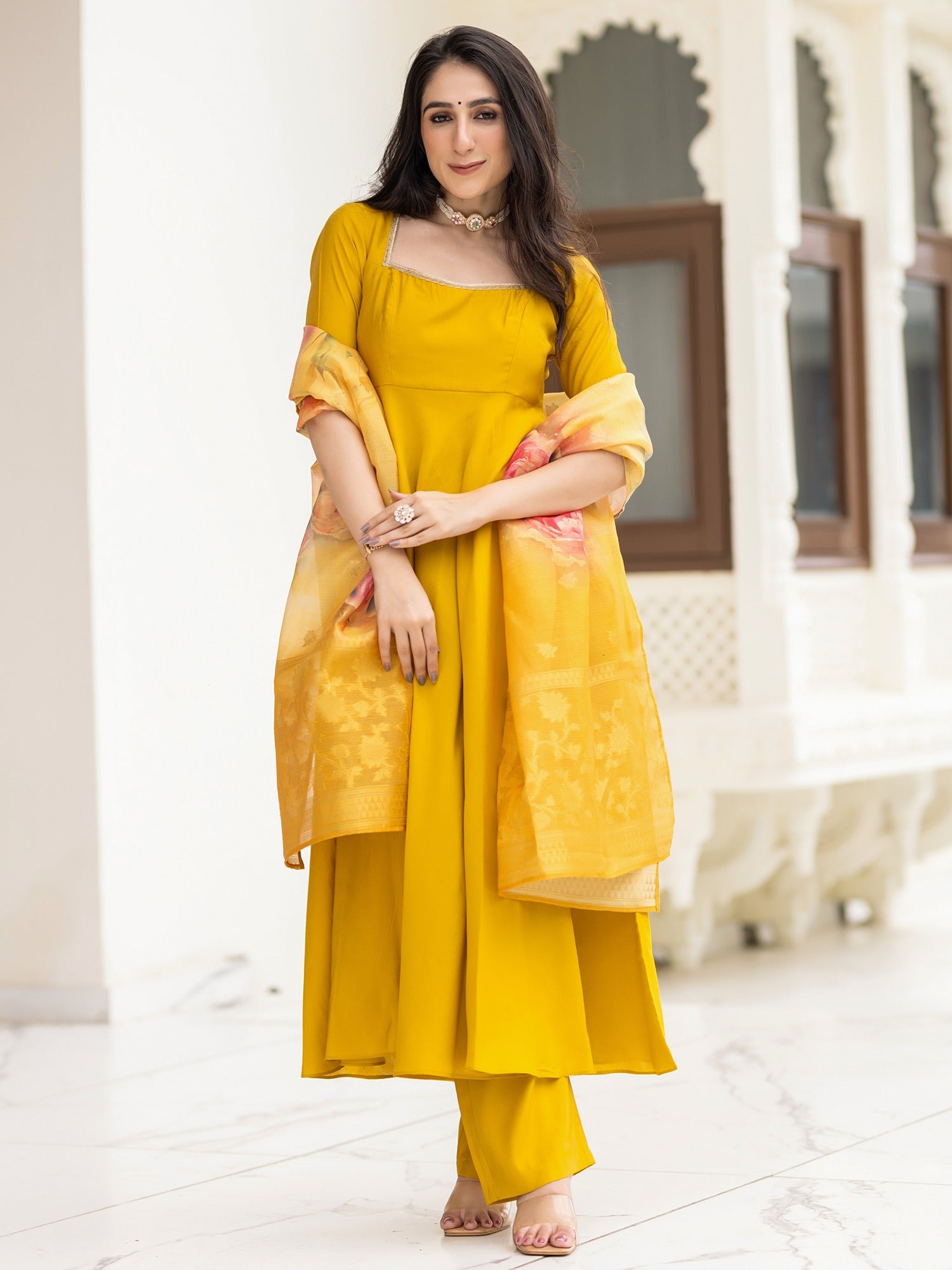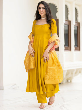 The solid green fabric is beautifully elevated with subtle handwork highlights that add a delicate shimmer and sophistication to the design. Paired with a coordinating dupatta, the ensemble exudes understated elegance, perfect for professional settings or casual occasions.