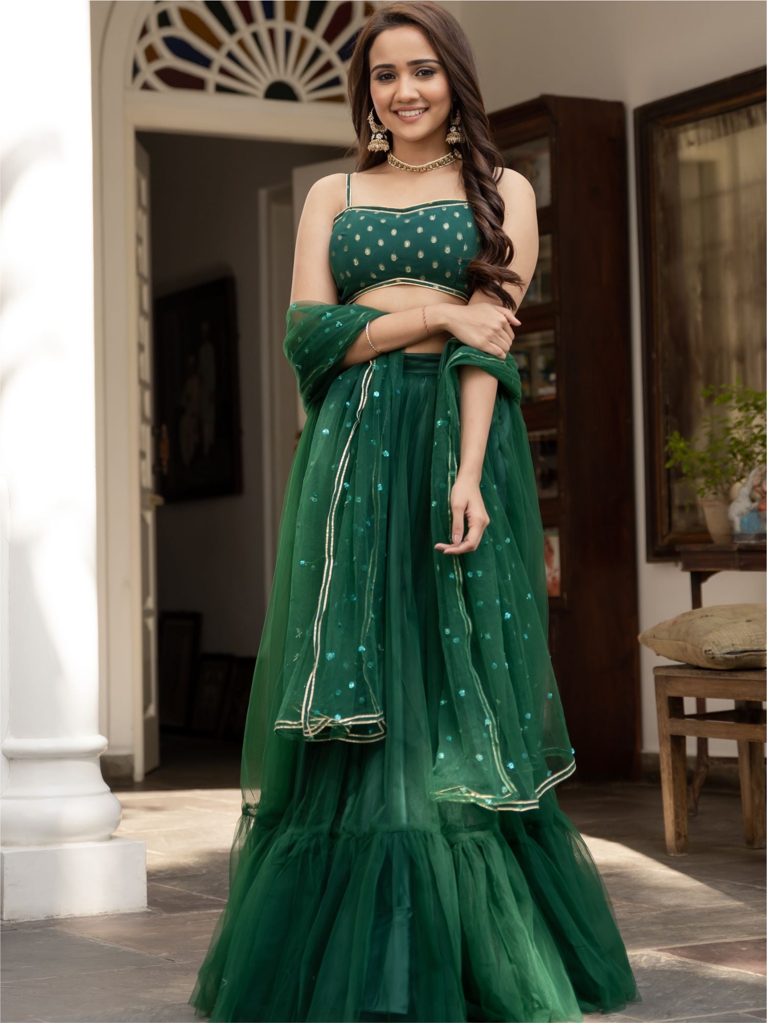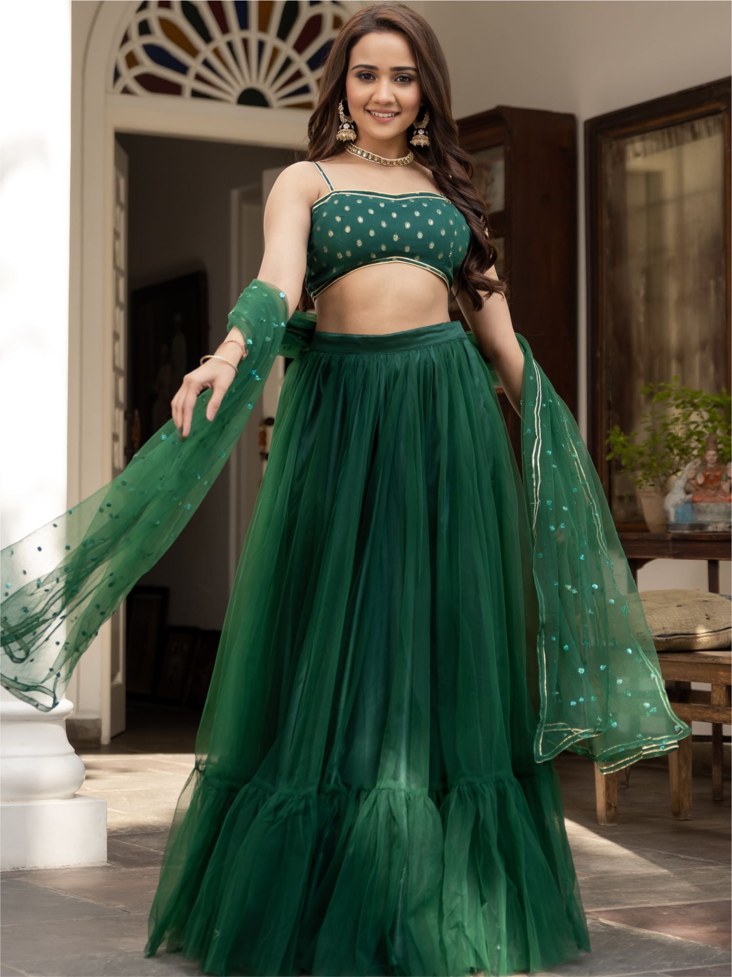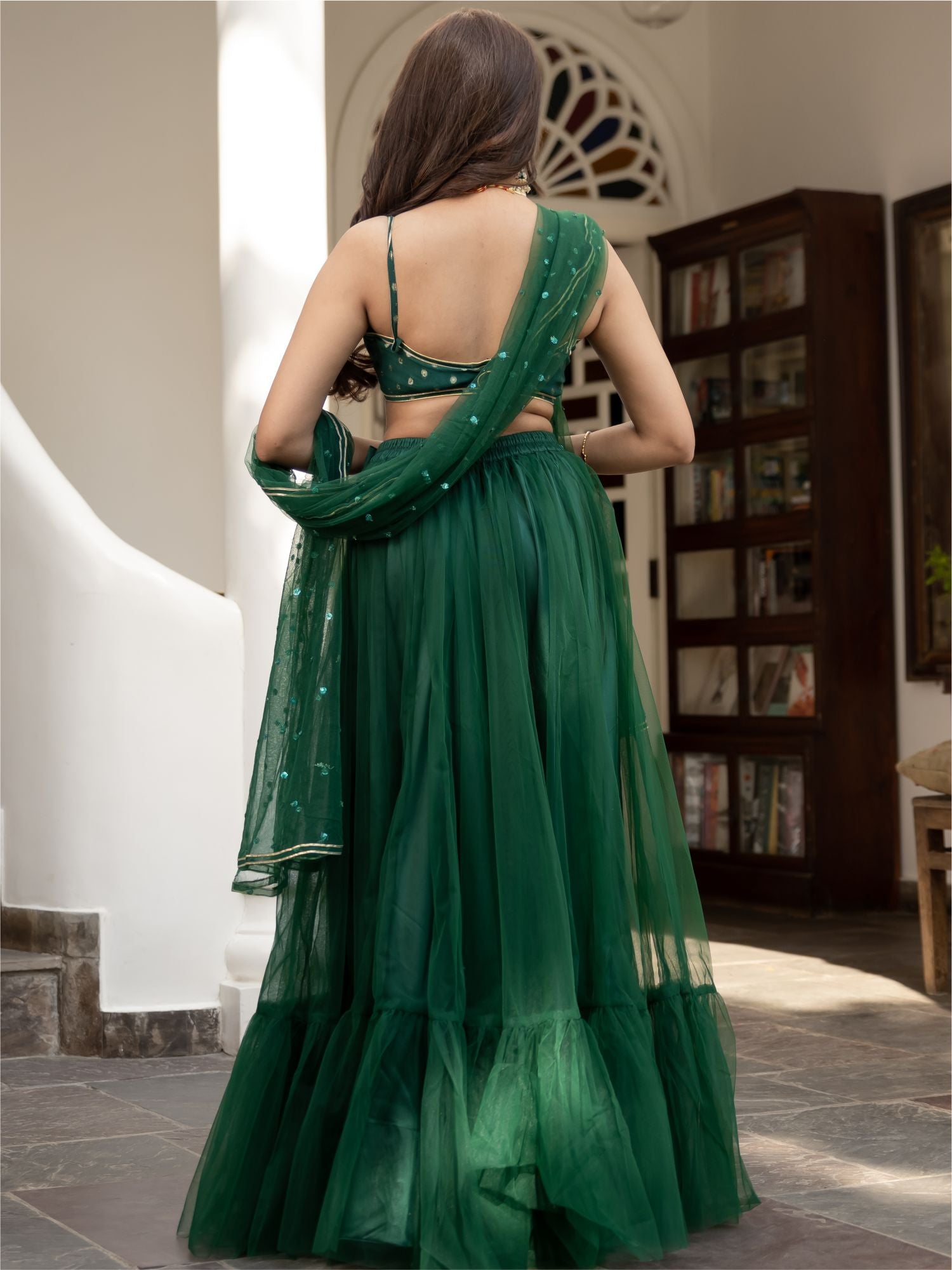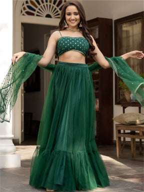 Green Net Lehenga Set