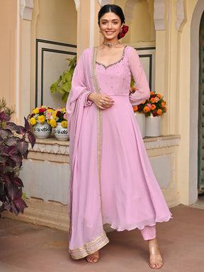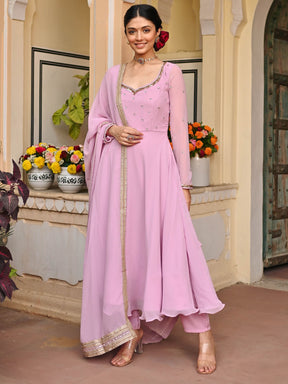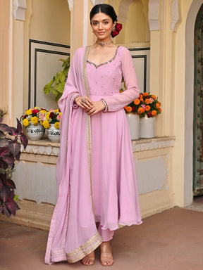 Lavender Handwork Georgette Anarkali Set