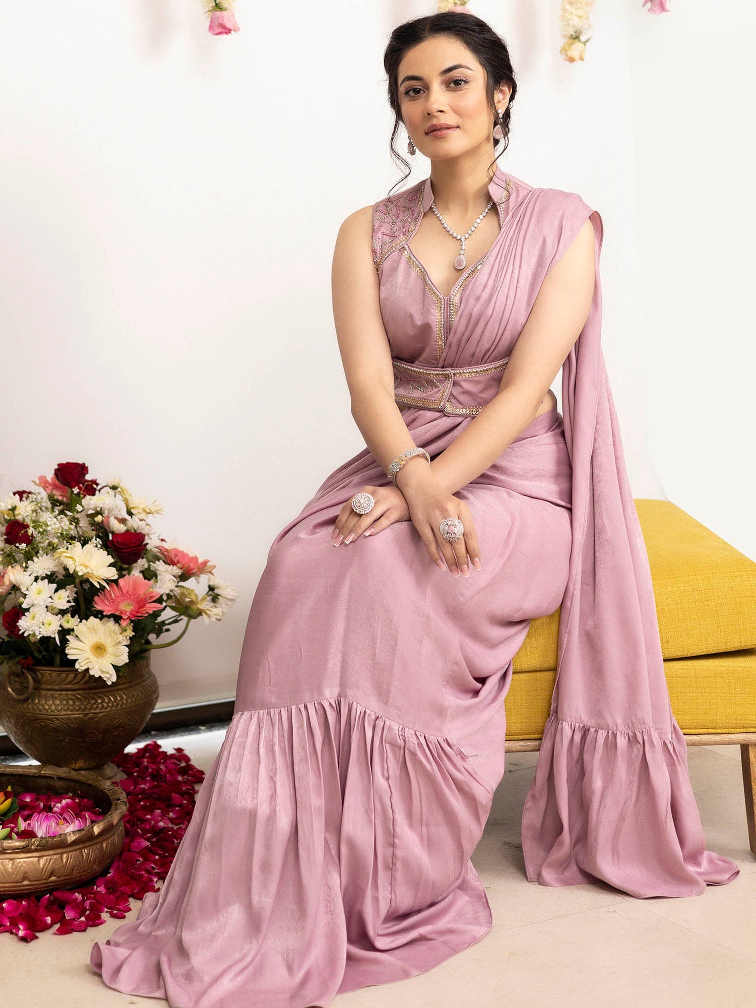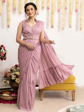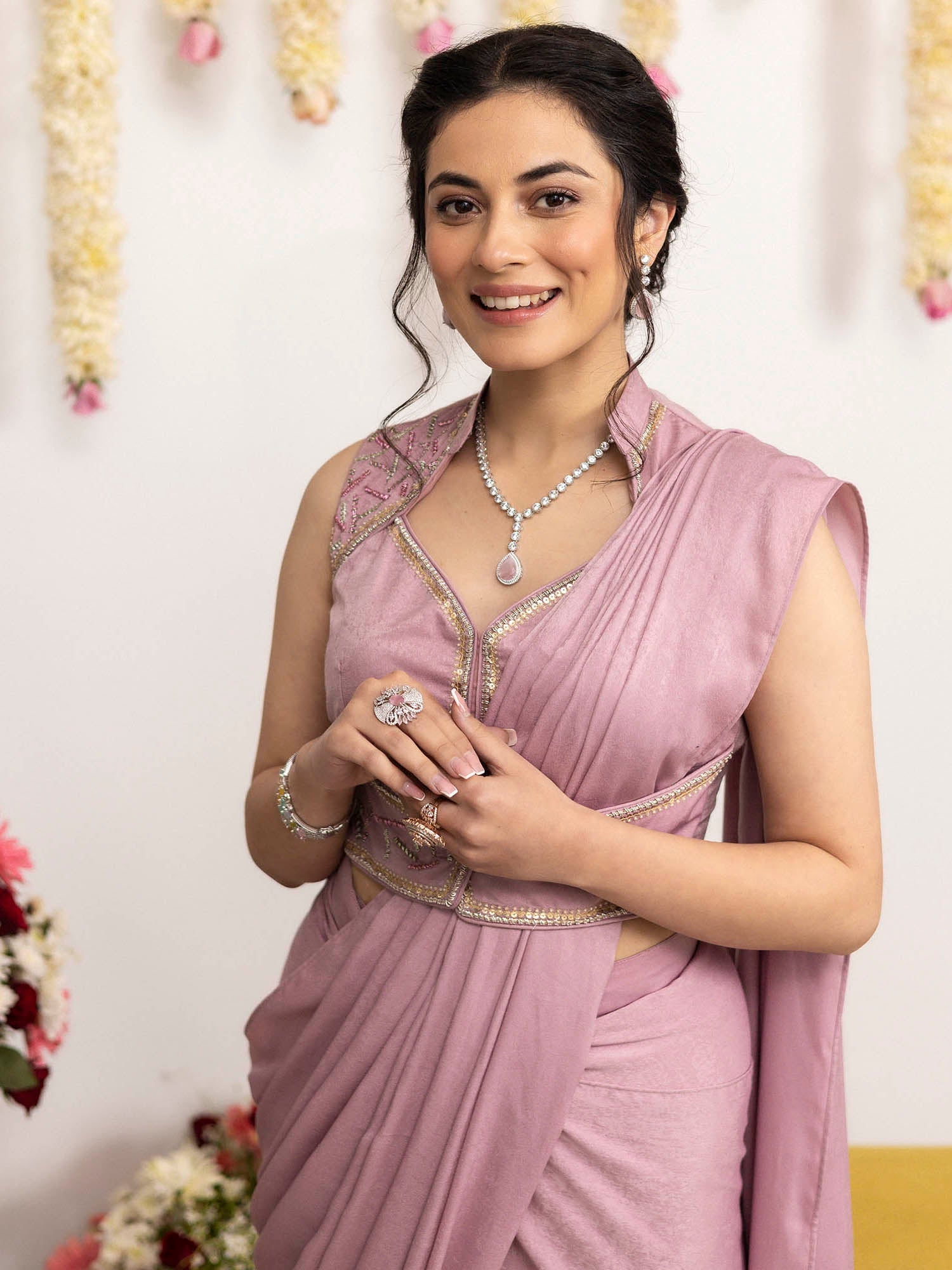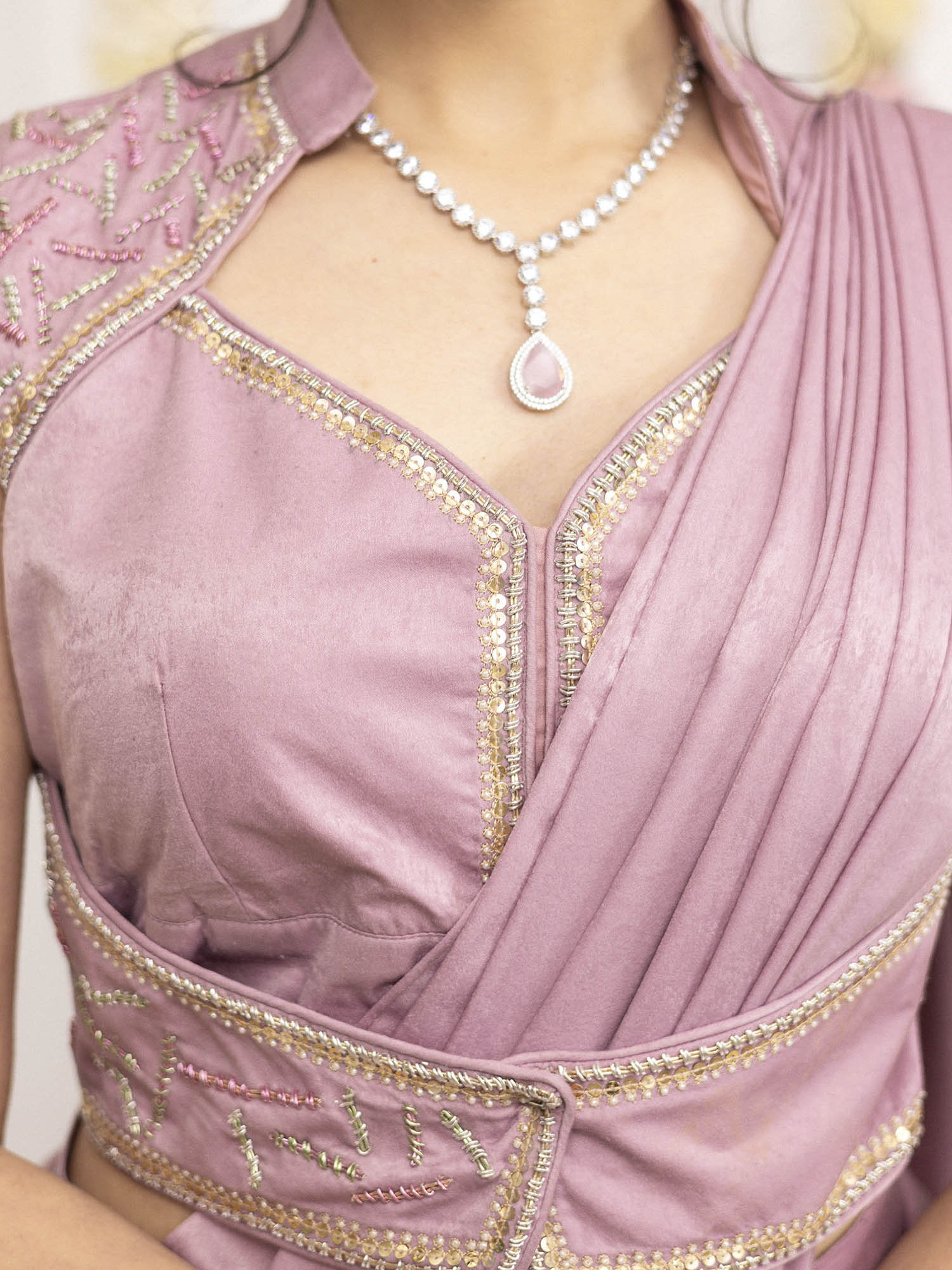 Radiate elegance in this enchanting Lilac Pink Apricot saree, a harmonious blend of soft hues that gracefully cascade, weaving a tapestry of sophistication. Adorned with delicate embroidery and a subtle sheen, this saree captures the essence of timeless beauty, making every step a dance of grace and style.