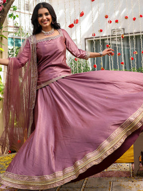 Lilac Short Kurti Lehenga Set