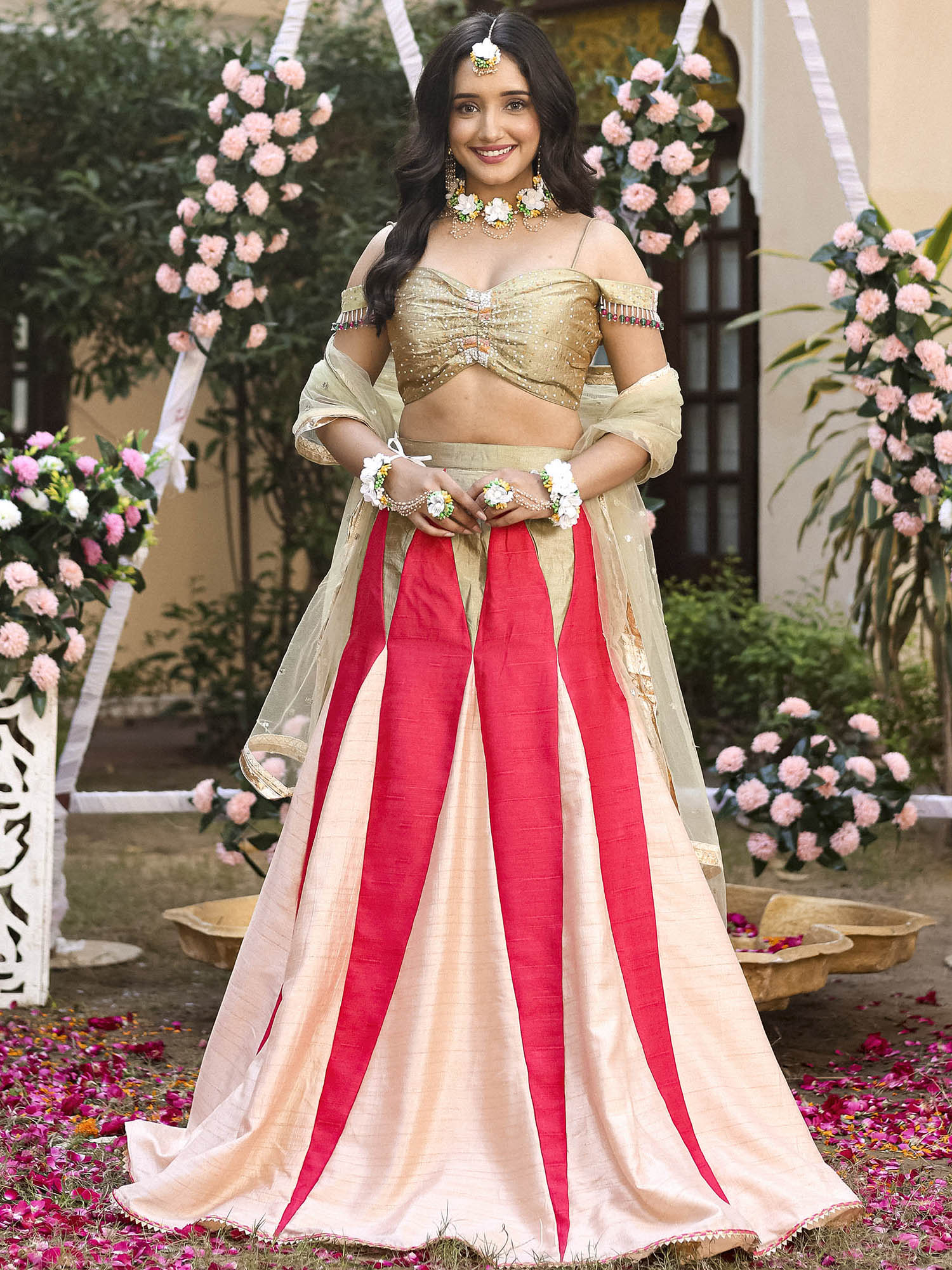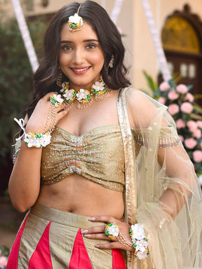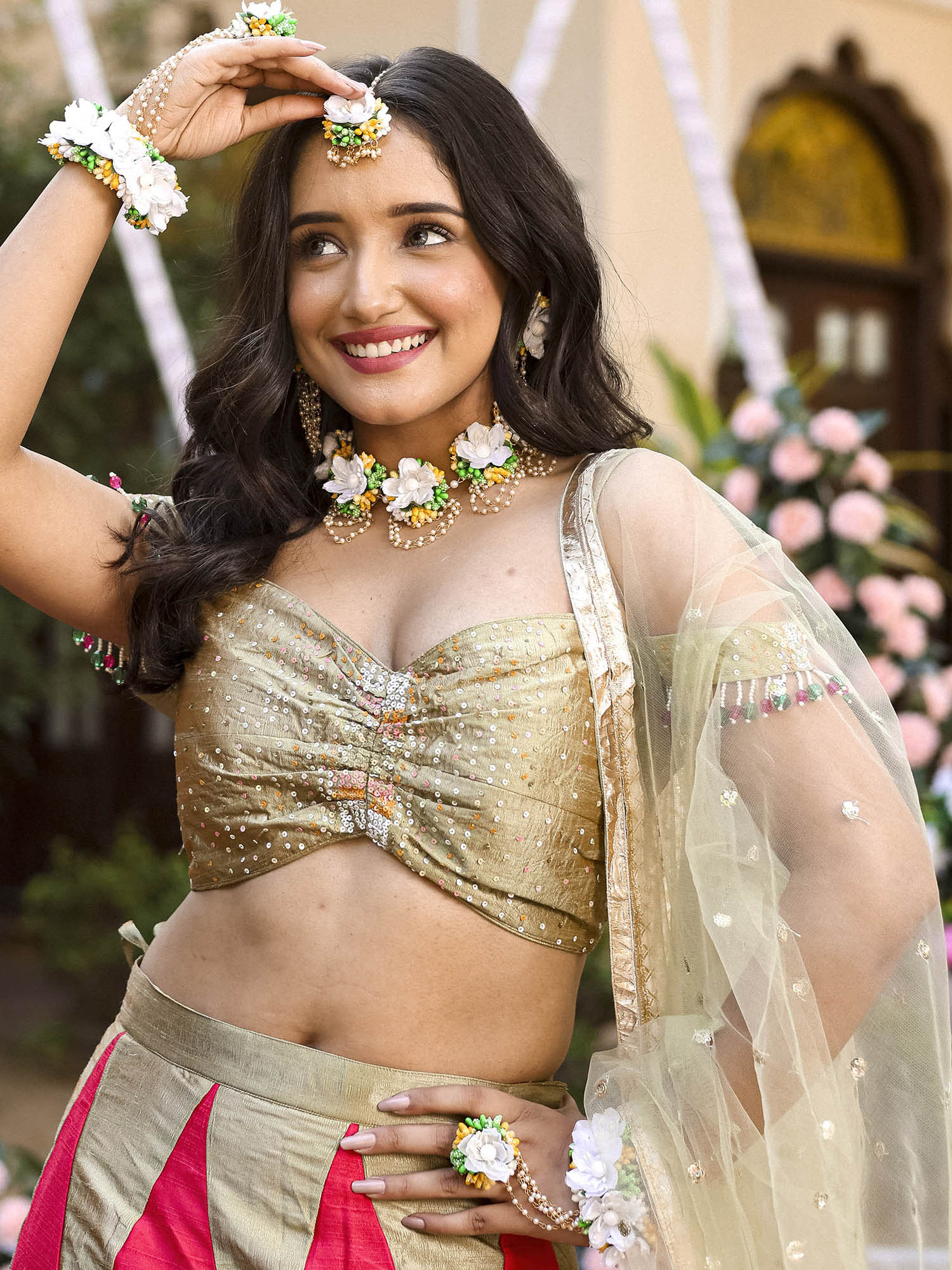 Elegant and enchanting, the Lotus Lehenga Set is a mesmerizing ensemble that effortlessly blends tradition with contemporary allure. Adorned with intricate lotus motifs, this ensemble captures the essence of grace and sophistication. The rich, vibrant colors and luxurious fabric create a captivating aura, making it the perfect choice for those who seek a blend of timeless charm and modern flair. Embrace the allure of the Lotus Lehenga Set and let your style bloom with beauty and poise.
