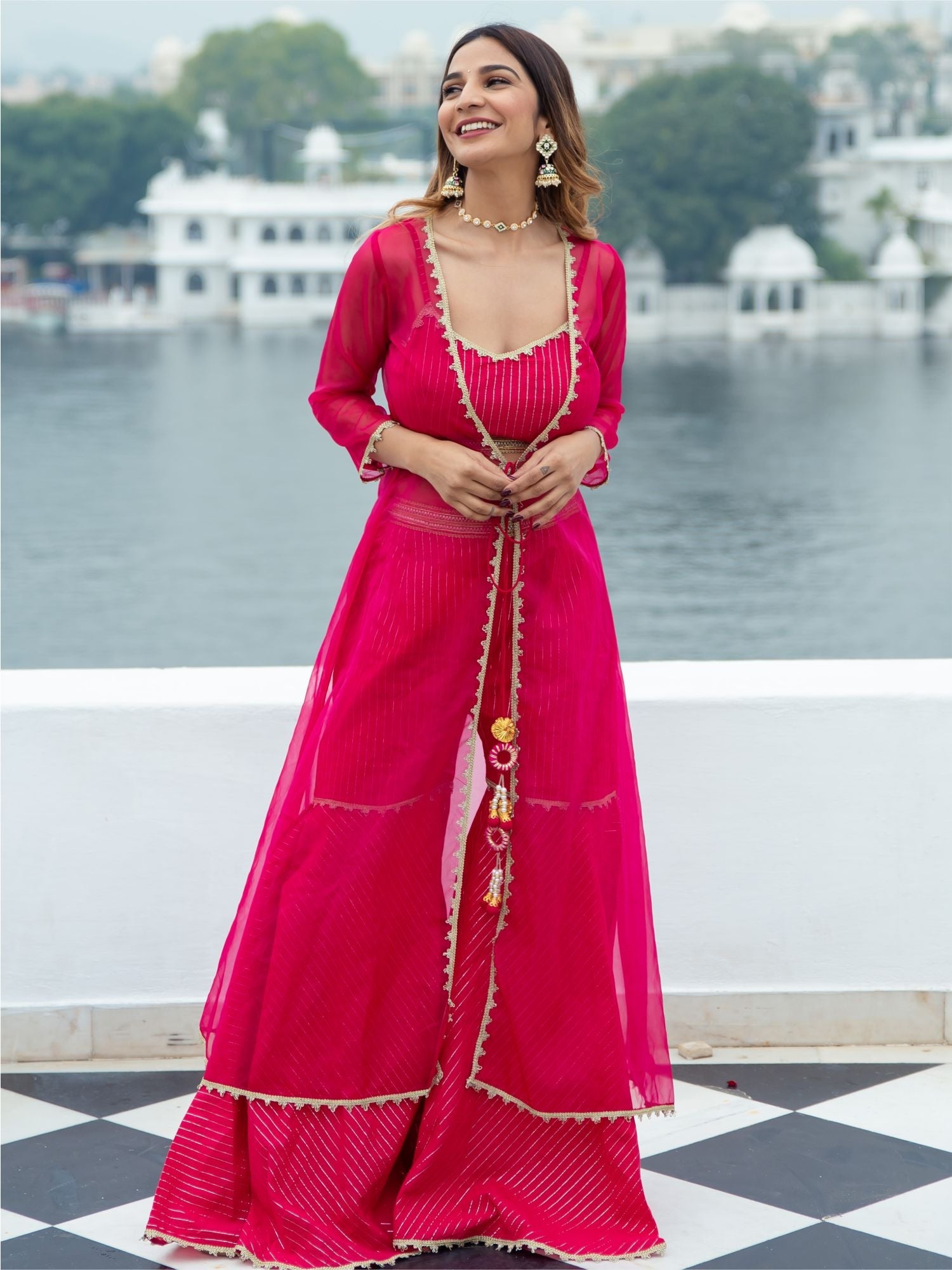 Radiate elegance in this Magenta Cotton Lurex Co-ords Set. Crafted for those who embrace style with comfort, this vibrant ensemble seamlessly blends sophistication and a touch of allure. Elevate your fashion game with the perfect combination of grace and glam.