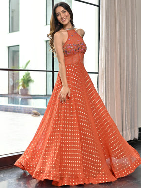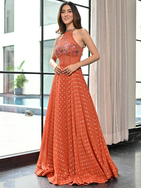 Meenakari Orange Ball Gown