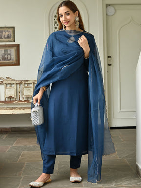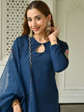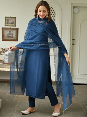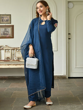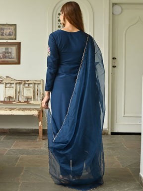 Elevate your style with our Navy Blue Handwork Kurta Set. Impeccably crafted, this set exudes sophistication with intricate handwork detailing. The rich navy blue hue adds a touch of regality, making it a timeless choice for any occasion. Make a statement that effortlessly blends tradition with contemporary elegance in this stunning ensemble.