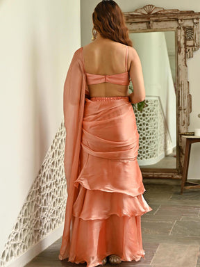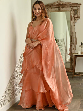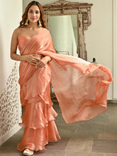 Peach Organza Ruffle Saree