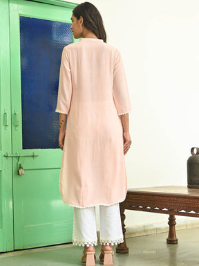 Elevate your style with our Peach Straight Kurta with Pants – a harmonious blend of elegance and comfort. The soft peach hue exudes sophistication, while the straight-cut silhouette offers a flattering fit. Paired with complementary pants, this ensemble effortlessly combines modern fashion with timeless charm. Make a statement that is both chic and comfortable with this versatile outfit.