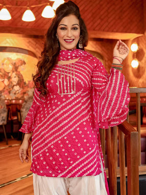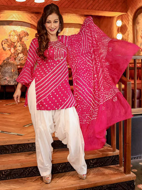 Pink Bandhej Kurta Pant