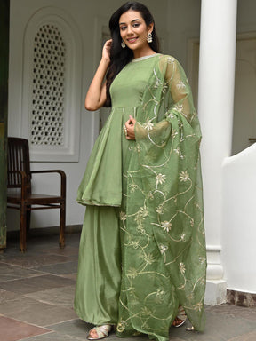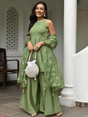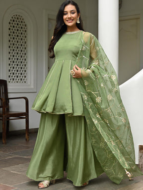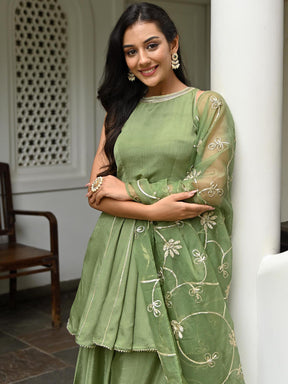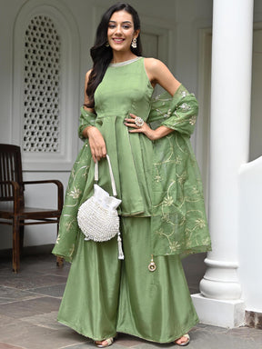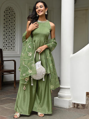 Elevate your style with our stunning Pista Green Silk Kurta Palazzo Set. Crafted with exquisite silk fabric, this ensemble exudes elegance and charm. The rich Pista Green hue adds a touch of sophistication, making it perfect for any occasion. Embrace the beauty of simplicity and grace with this effortlessly chic outfit.