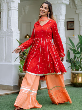 Red Bandhani Tie-Dye Kurta and Palazzo Set