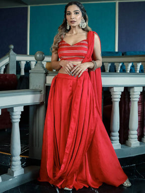 Red Palazzo Saree With Blouse