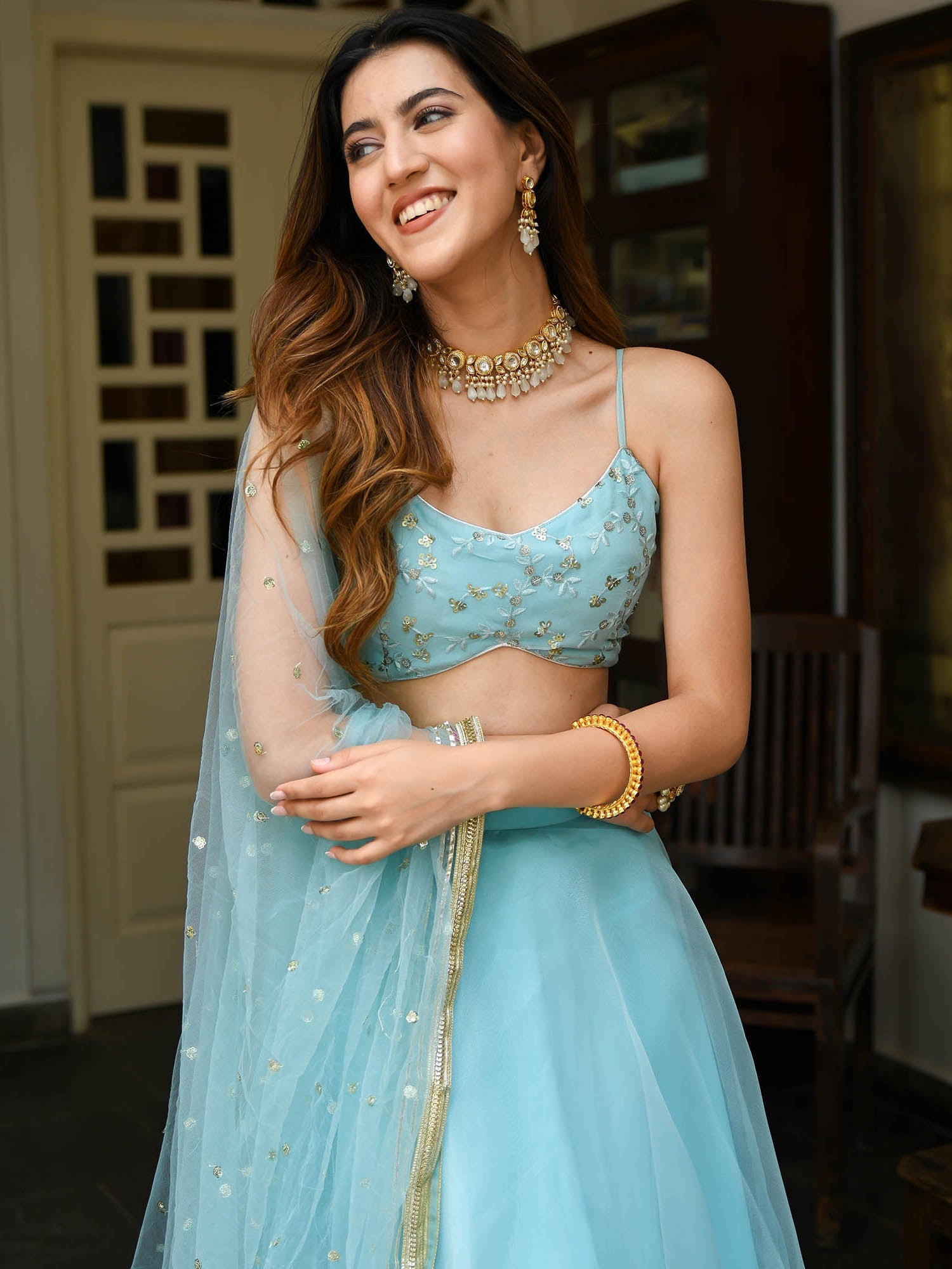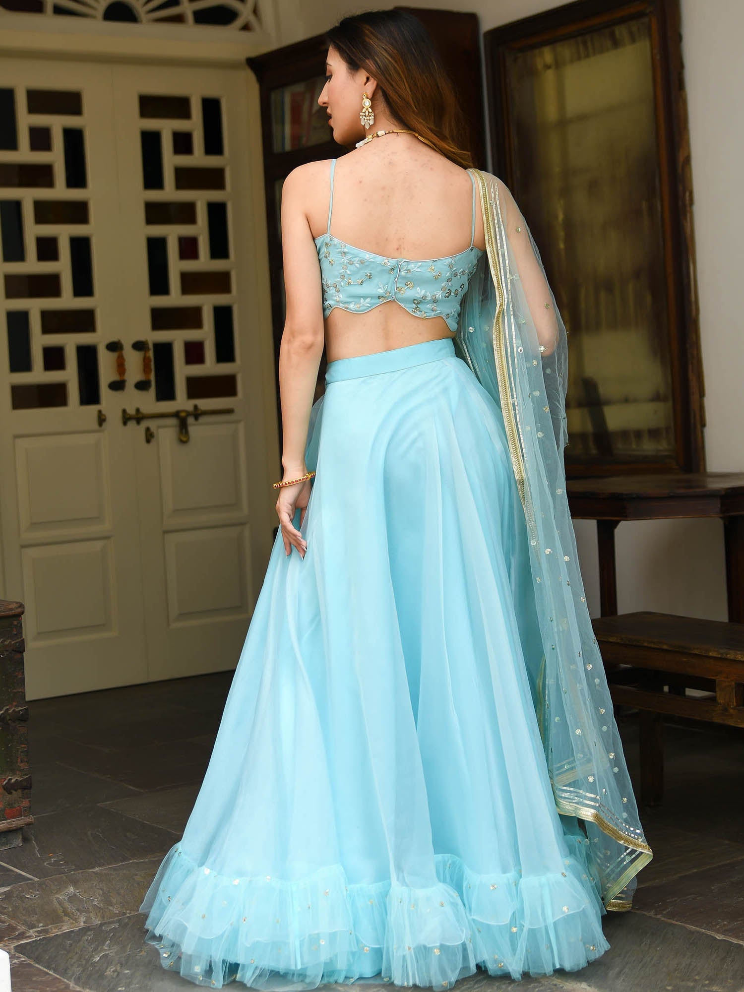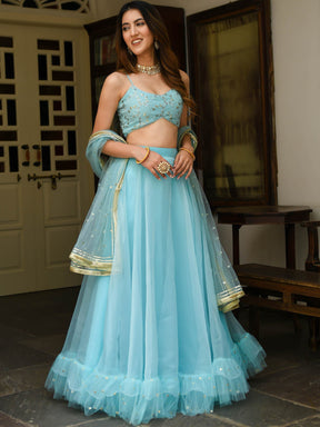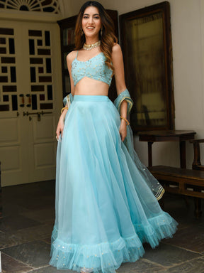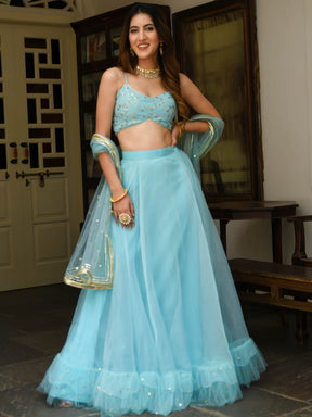 Sky Blue Organza Lehenga Set