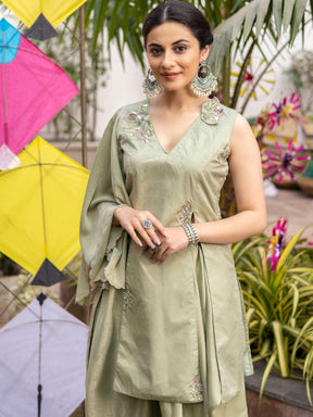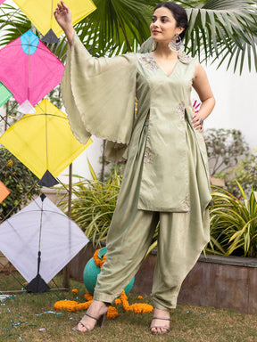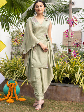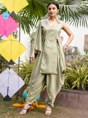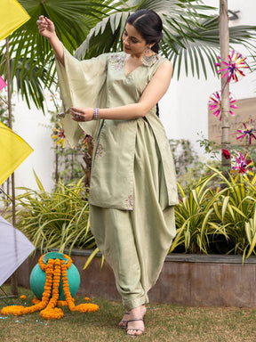 Tea Green Apricot Kurta Dhoti Set