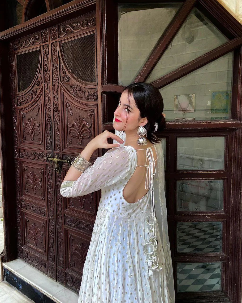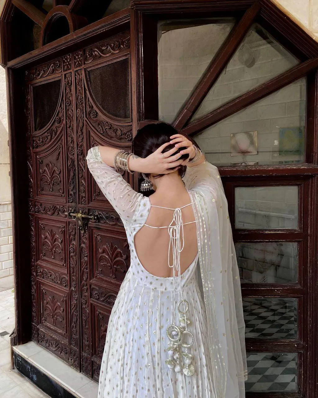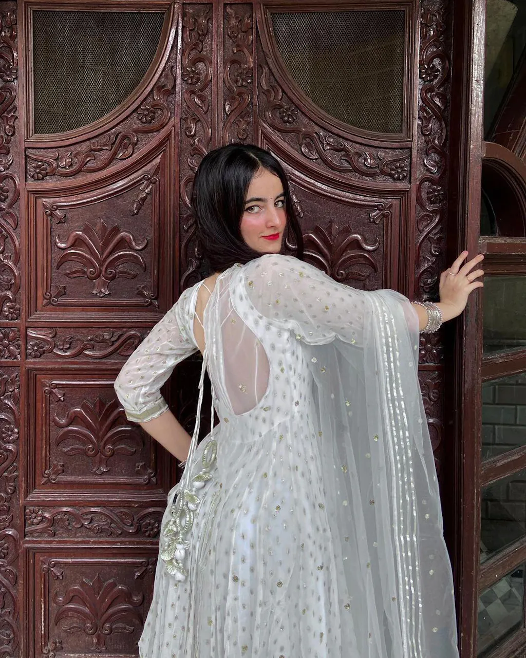 White Georgette Anarkali Set
