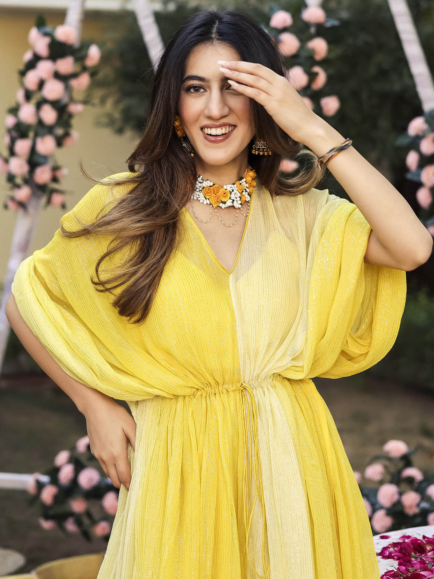 Radiate sunshine in our Yellow Lurex Kaftan, a mesmerizing blend of vibrant hues and sparkling allure. Effortlessly chic, this kaftan promises a head-turning, sun-kissed style that captivates with every shimmer. Embrace the brilliance of summer in this must-have fashion statement.