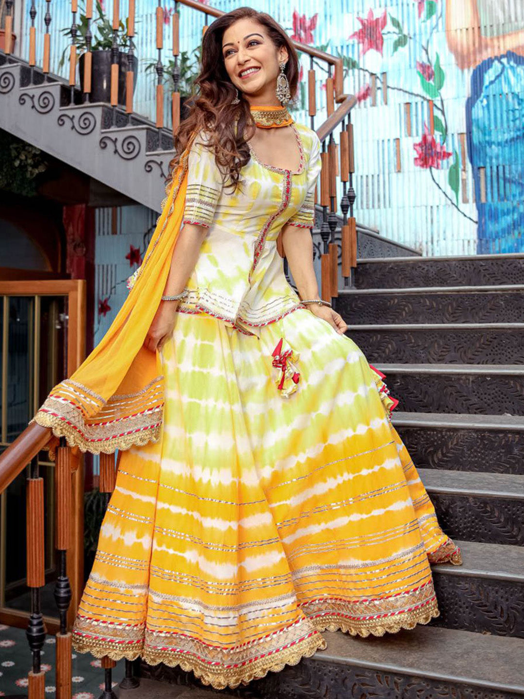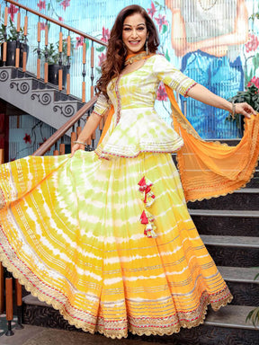 Yellow Peplum Skirt Dupatta Set